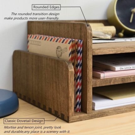 Product description     Wood Desk Organizer 5 Trays – Desktop Document Letter Tray for Folders.. Features    Good Materials: Made of