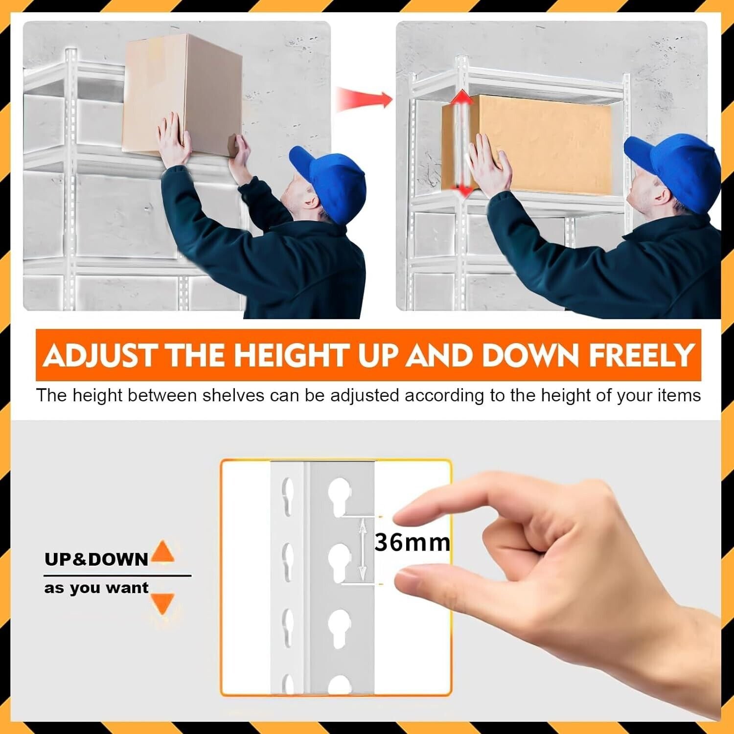 - Wide Application: Ideal for garages, warehouses, basements, and living spaces, this shelving unit s adaptability makes it a prime choice for decluttering and optimizing any area, adding convenience to all facets of life.