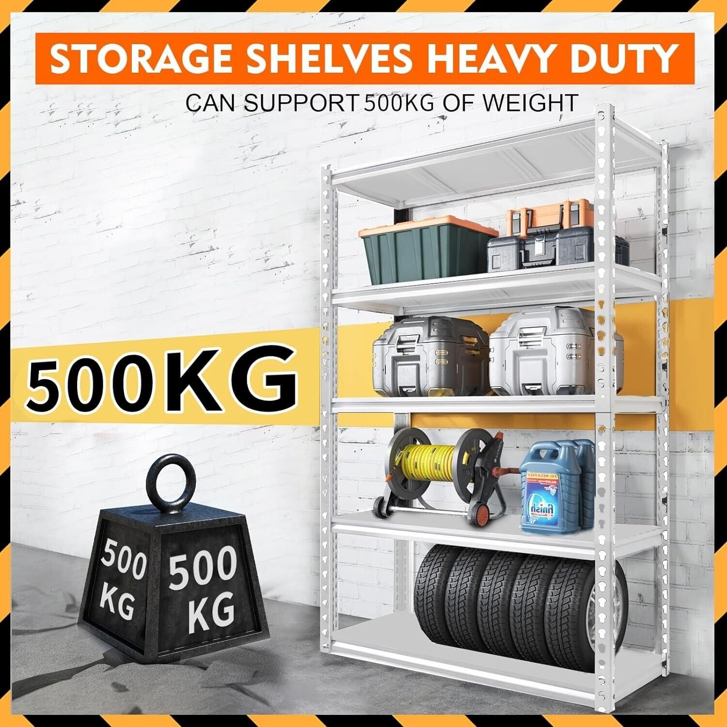 - Solid Construction: Crafted with premium steel, our shelving frame and shelves promise stability and resist deformation. Capable of holding up to 500KG overall, it stands as a steadfast storage solution for heavy-duty items.
