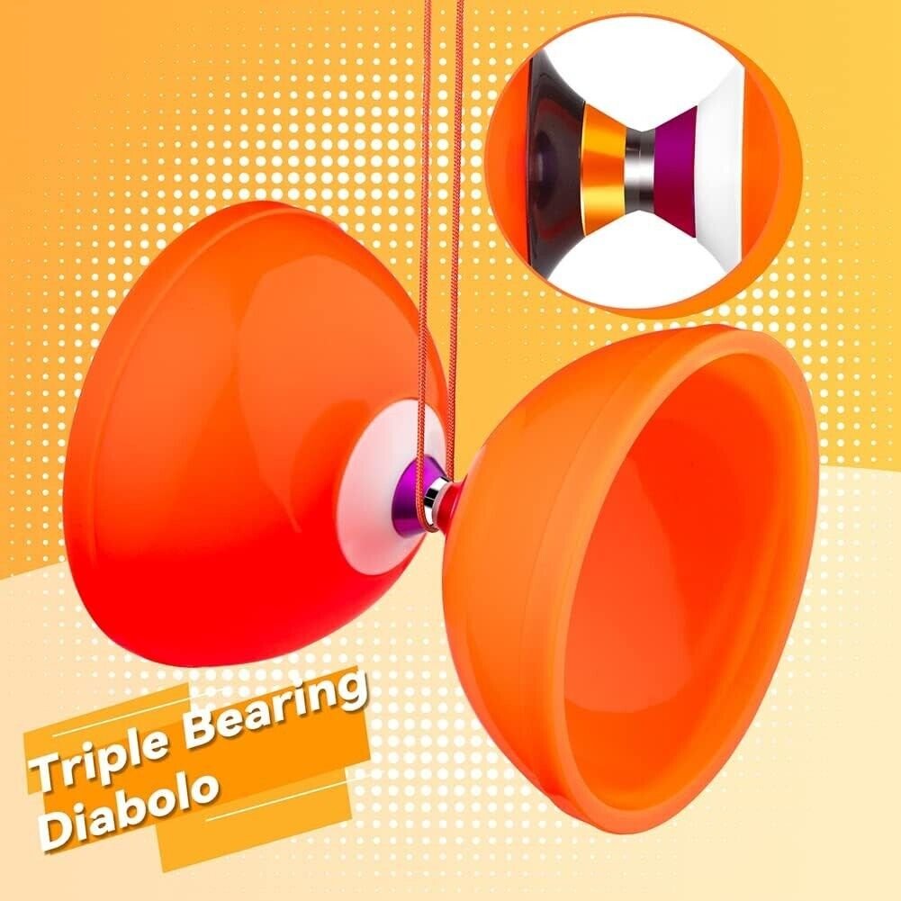 - Long Spin Triple Bearing Diabolo – High performance Chinese yoyo Diabolo skill toy, make you do more advanced tricks, throws, catches and cradles. 5 inch diameter professional Diabolo, Triple Bearing for longer spin