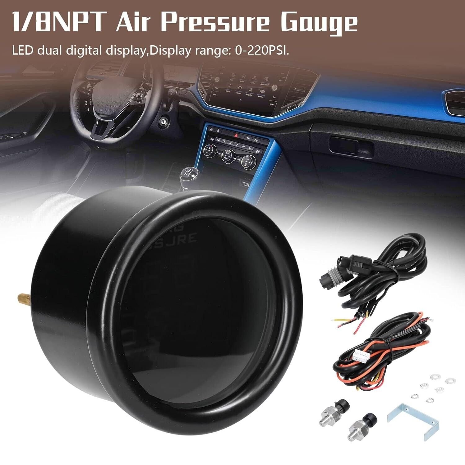 - LED dual digital display, clear and easy to read. Display range: 0-220PSI.