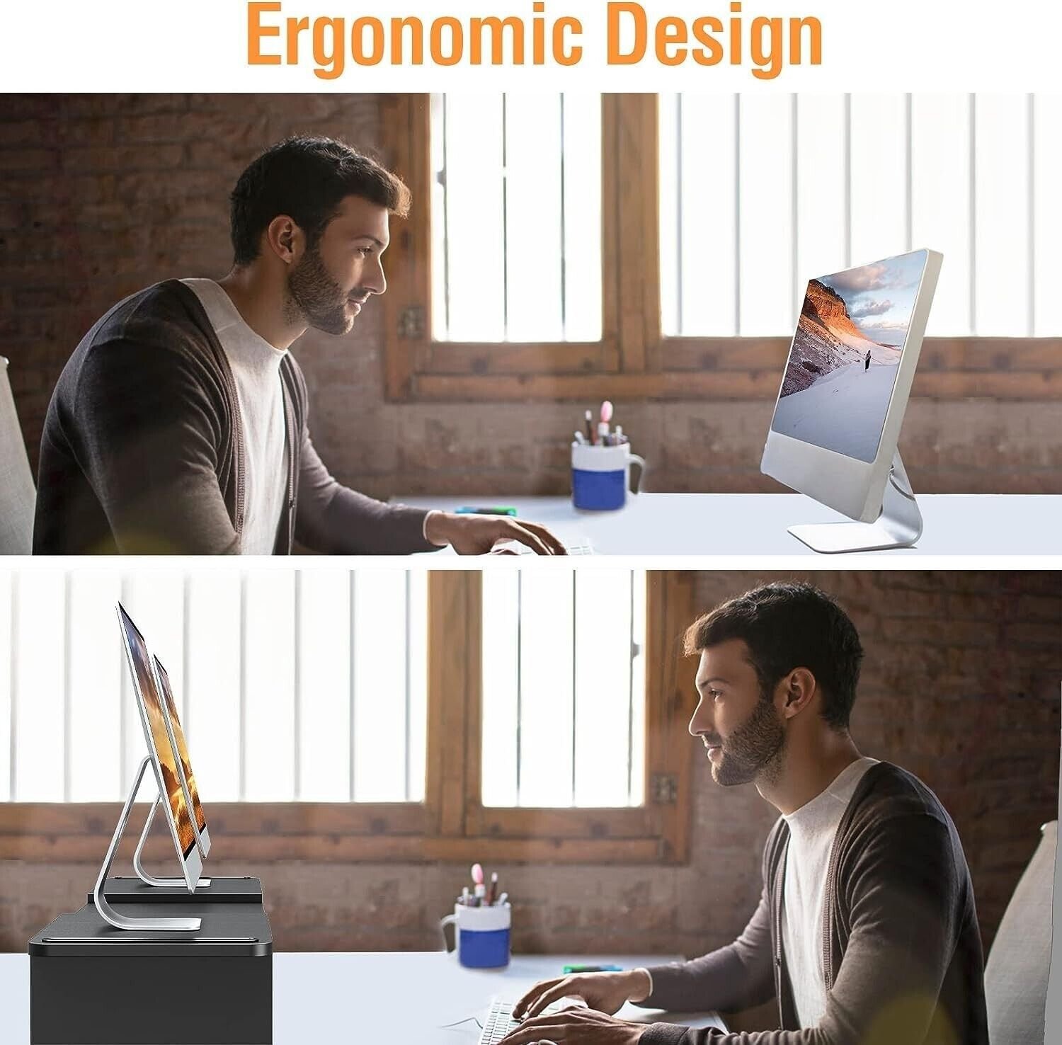 - Ergonomic Design Monitor Stand Raise up your monitor or laptop by 3.36”/3.94″ and elevate your monitor screen to a comfortable viewing height, reducing the risk of neck and eye-straining. Stay comfortable and get healthier!
