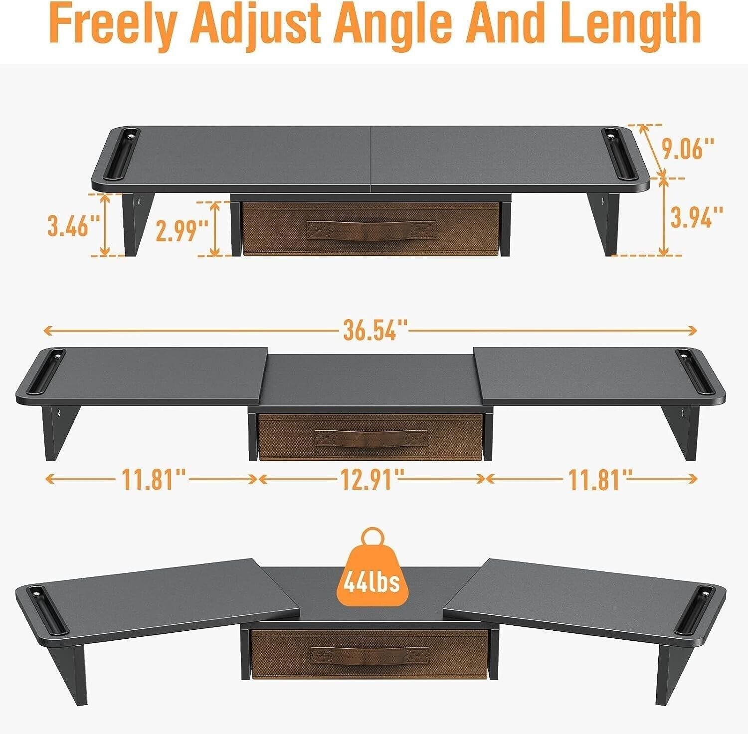 - Freely Adjust Angle And Length You can easily adjust the length of the monitor stand riser to meet various office needs. According to your personal preferences, you can also adjust the angle to obtain a better viewing experience.