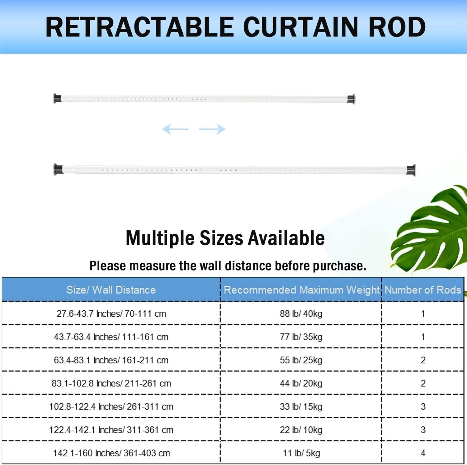 - EASY TO INSTALL No need to drill holes, no damage to walls, the tension curtain rod is very easy to assemble and install, also easy to adjust length