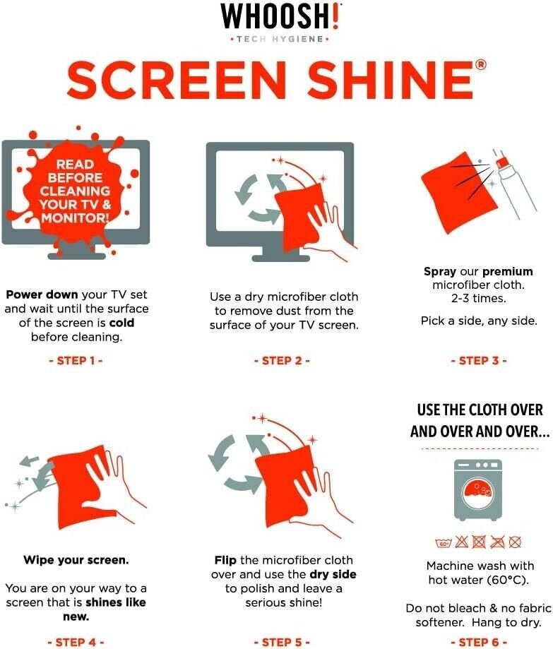 - PORTABLE SCREEN CLEANER – Wipe away dirt, grime, and dust with this next generation screen cleaner by WHOOSH! This travel size set fits in pockets, purses, and glove compartments of your car for when you need some shine on the go.